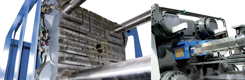 ◆ Respective mold clamping cylinder is not integrated with the platen, as a whole, without oil leakage problem by casting sand hole.